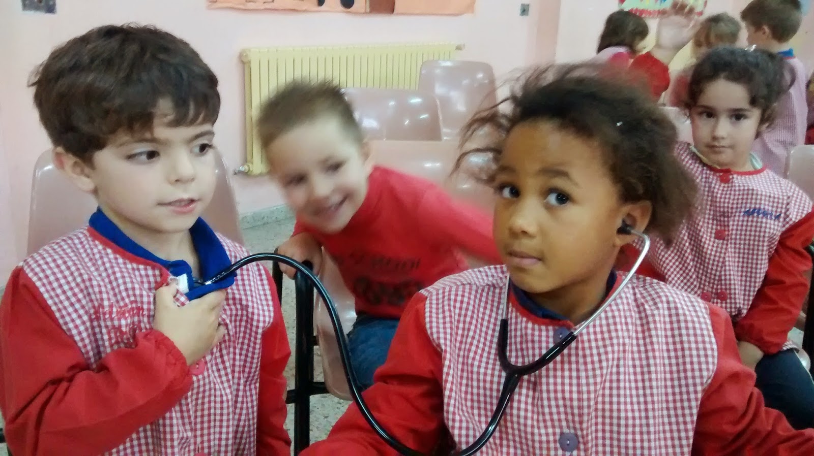Continuamos os nenos e nenas de 4 anos visitando a farmacia de Fene, onde poidemos ver todas as cousas que alí poemos atopar. E rematamos coa visita dunha pediatra (Guadalupe do Centro de Saúde de Fene) ao noso colexio para os nenos e nenas de 5 anos. A visita axudoulles a ter un acercamento cun médico, mostrándolles algunhos dos aparatos que habitualmente teñen na súa consulta e a intervir en algunhas das revisións máis habituais dunha consulta rutinaria. Foron unhas xornadas onde aprenderon moito sobre un xeito de vida saudable.